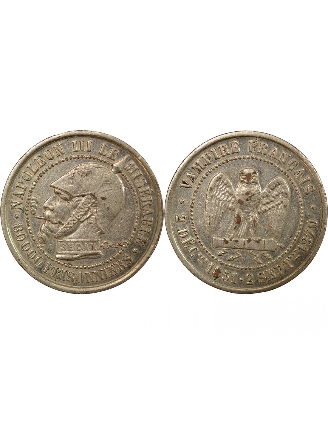 France Napoléon III, Defaite De Sedan - Jeton Bronze Plaque Argent - 1870
