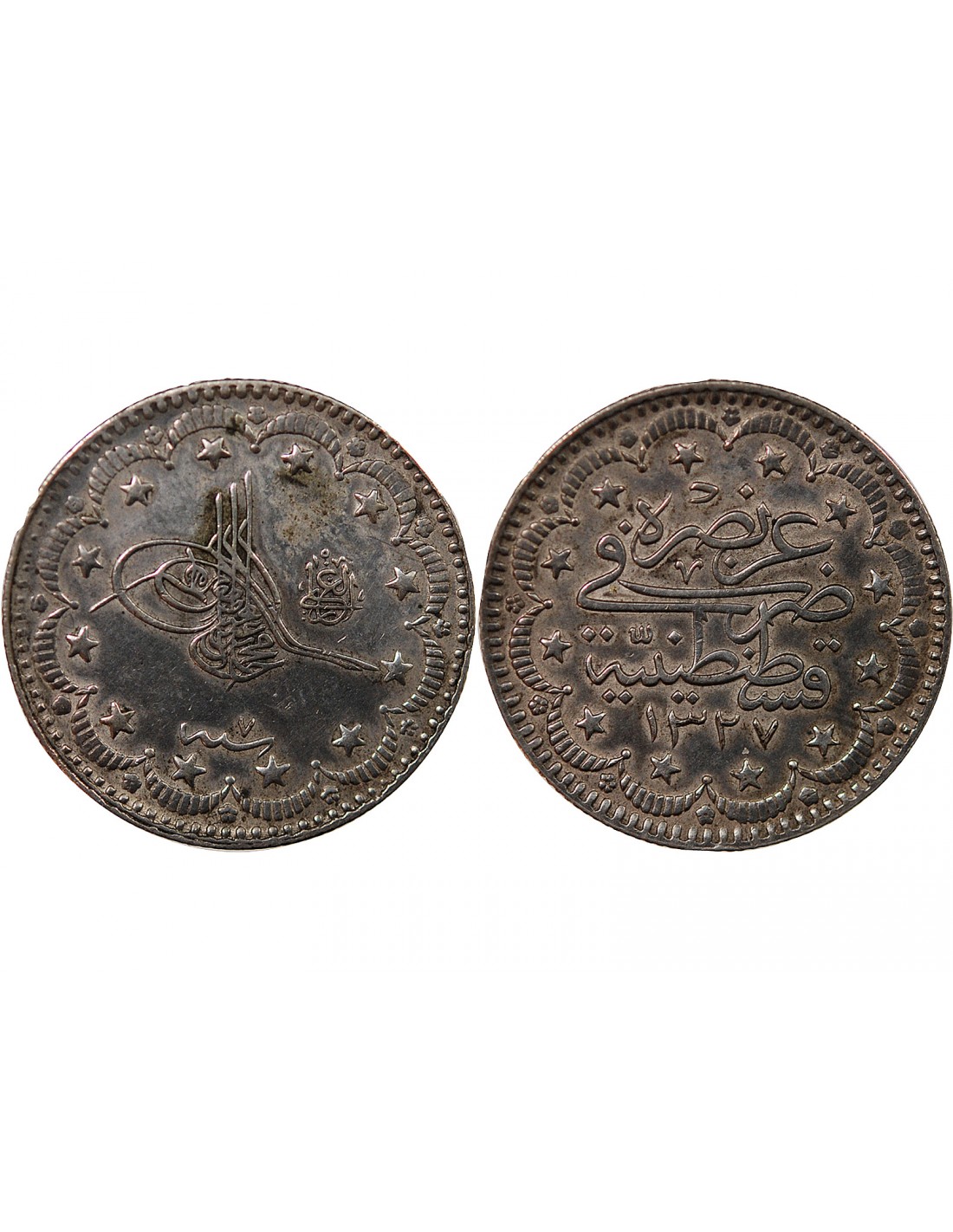 EMPIRE OTTOMAN, MEHMET V - 5 KURUS ARGENT 1327 (1915)