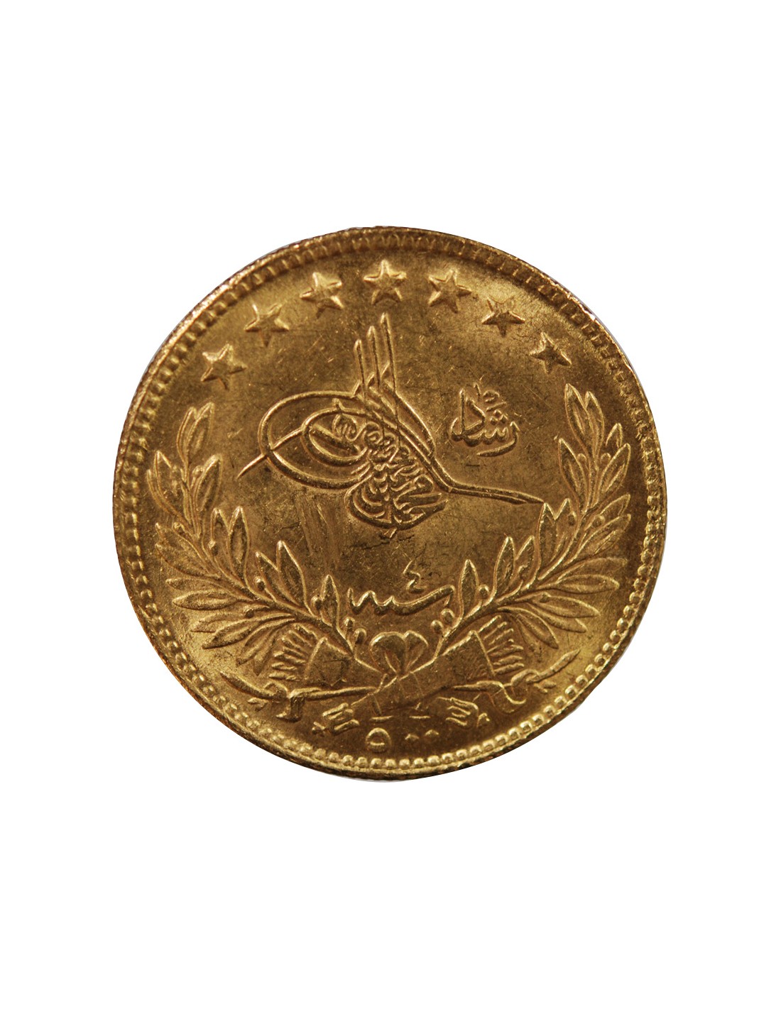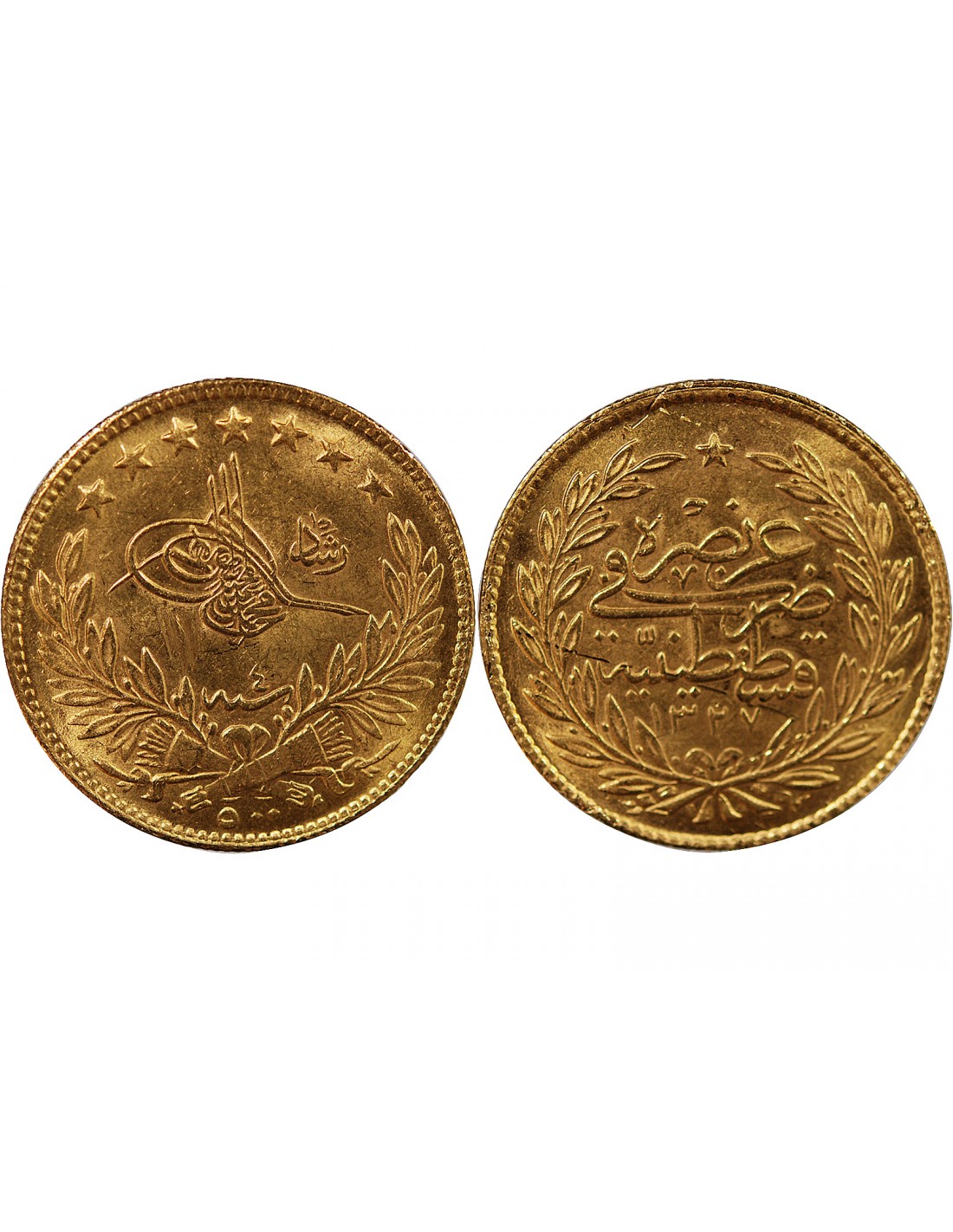 EMPIRE OTTOMAN, SULTAN MEHMED V - 500 KURUSH OR - CONSTANTINOPLE, 1327 AH / 4 (1912-1913)