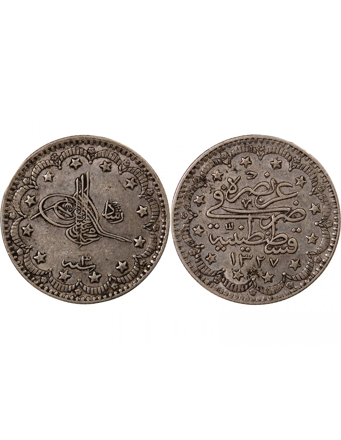 Vendu Moyen-Orient Empire Ottoman Empire Ottoman, Mehmet V - 5 Kurus Argent 1327 (1915) SUFFREN sf_19869 20,00 € EMPIRE OTTOMAN, MEHMET V - 5 KURUS ARGENT 1327 (1915) View