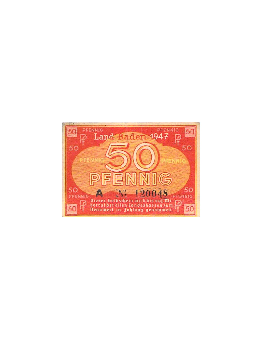 ALLEMAGNE, BADE, OCCUPATION FRANCAISE - 50 PFENNIG 1947