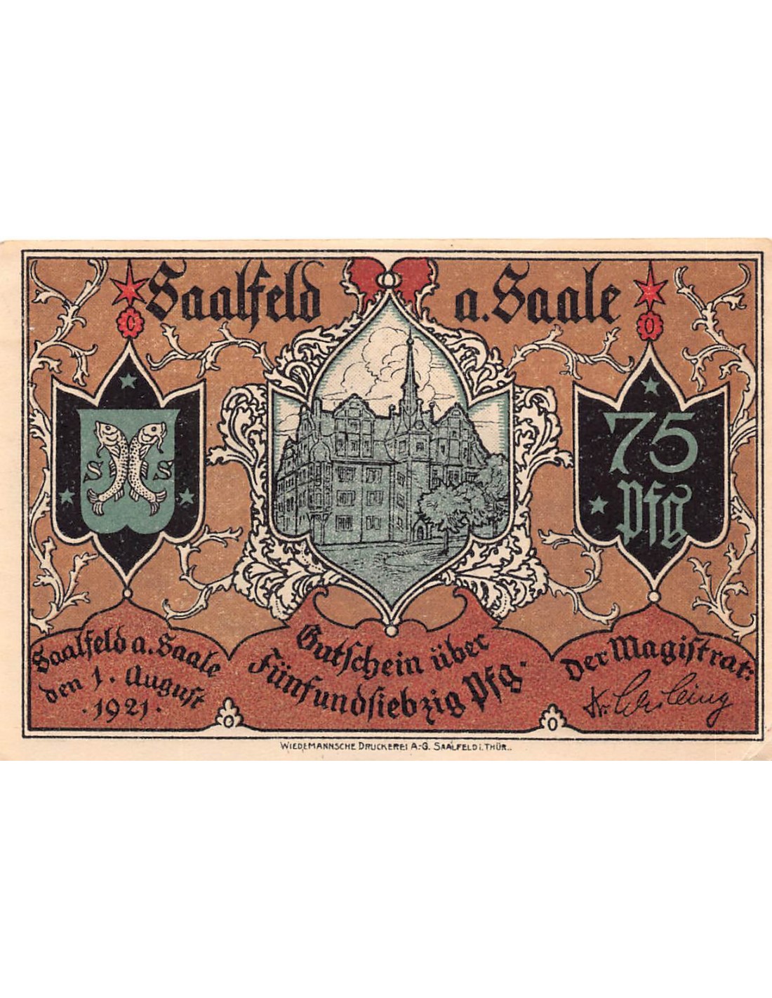 Allemagne Saalfeld A. Saale - 75 Pfennig 1921