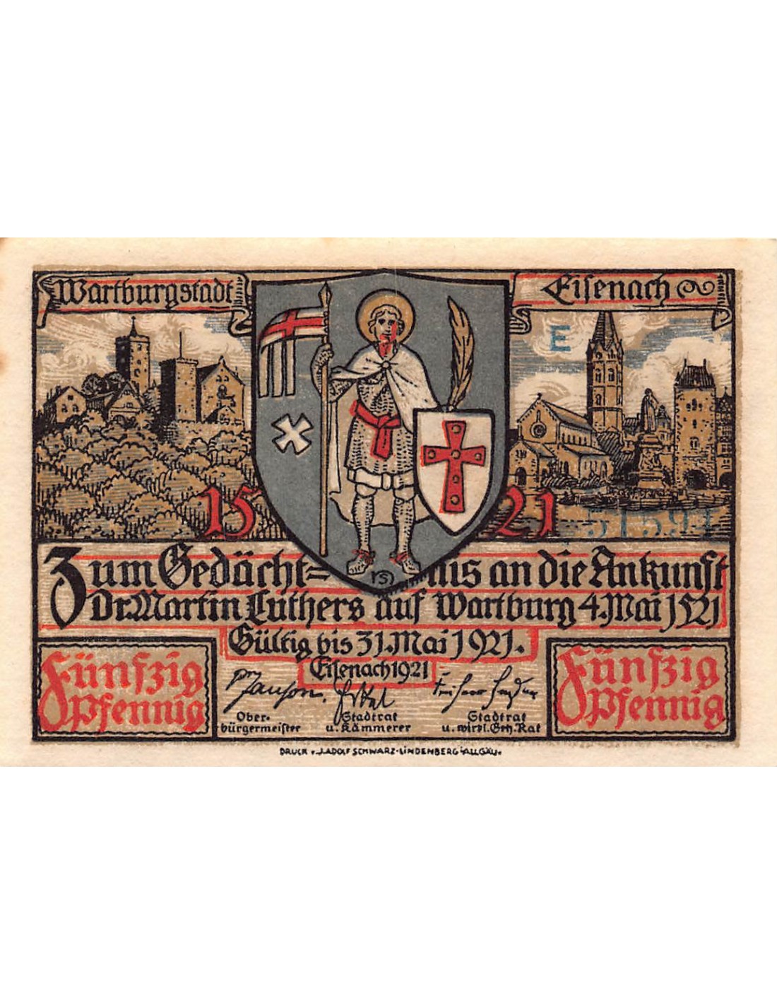 ALLEMAGNE, EISENACH - 50 PFENNIG 1921
