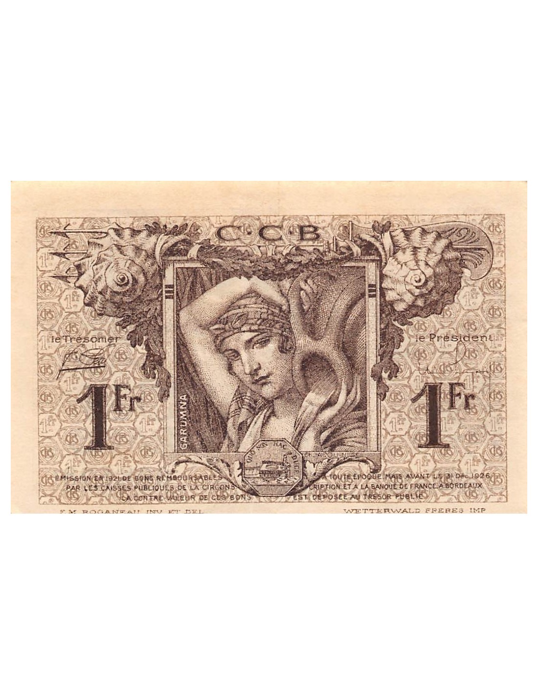 CHAMBRE DE COMMERCE DE BORDEAUX - 1 FRANC 1921 - TTB