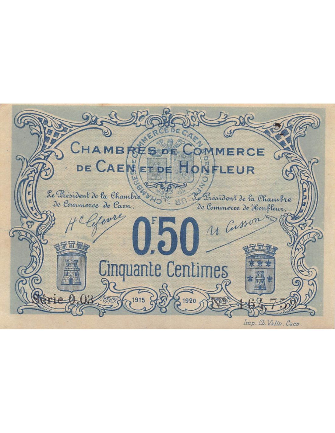 CHAMBRE DE COMMERCE, CAEN ET HONFLEUR - 50 CENTIMES 1920