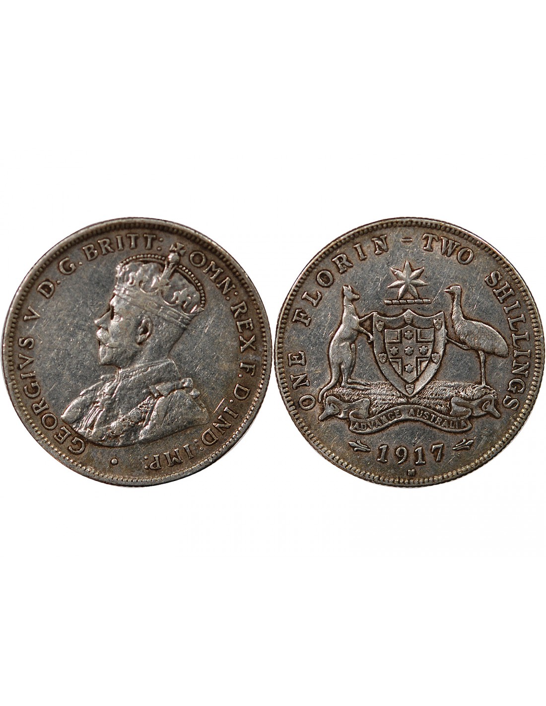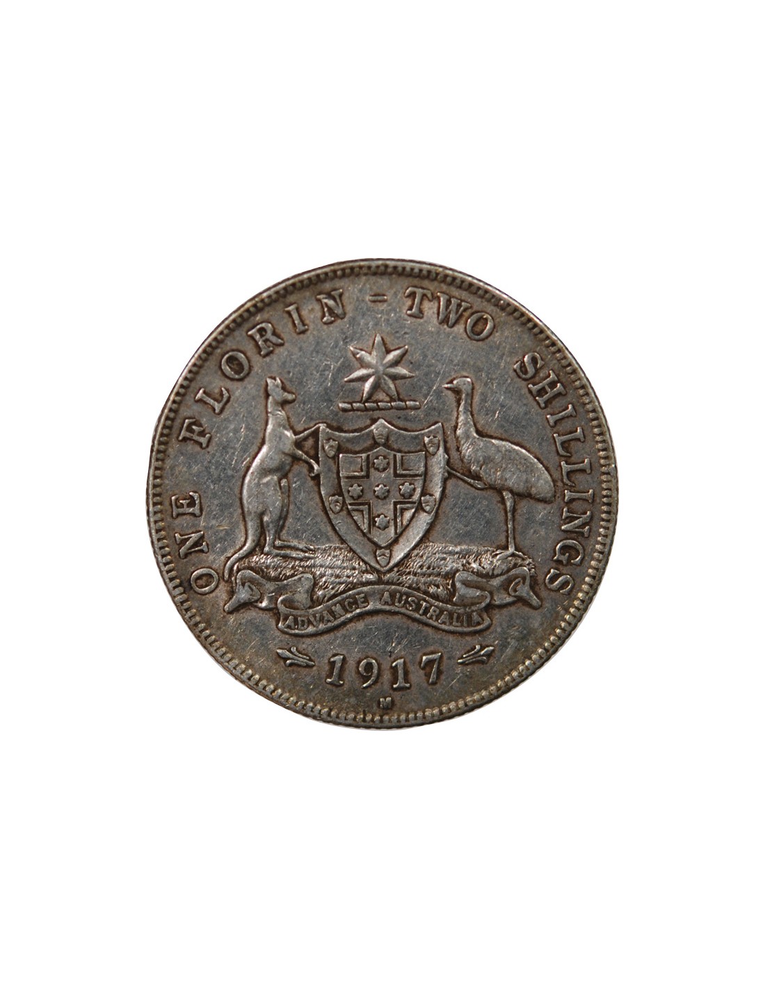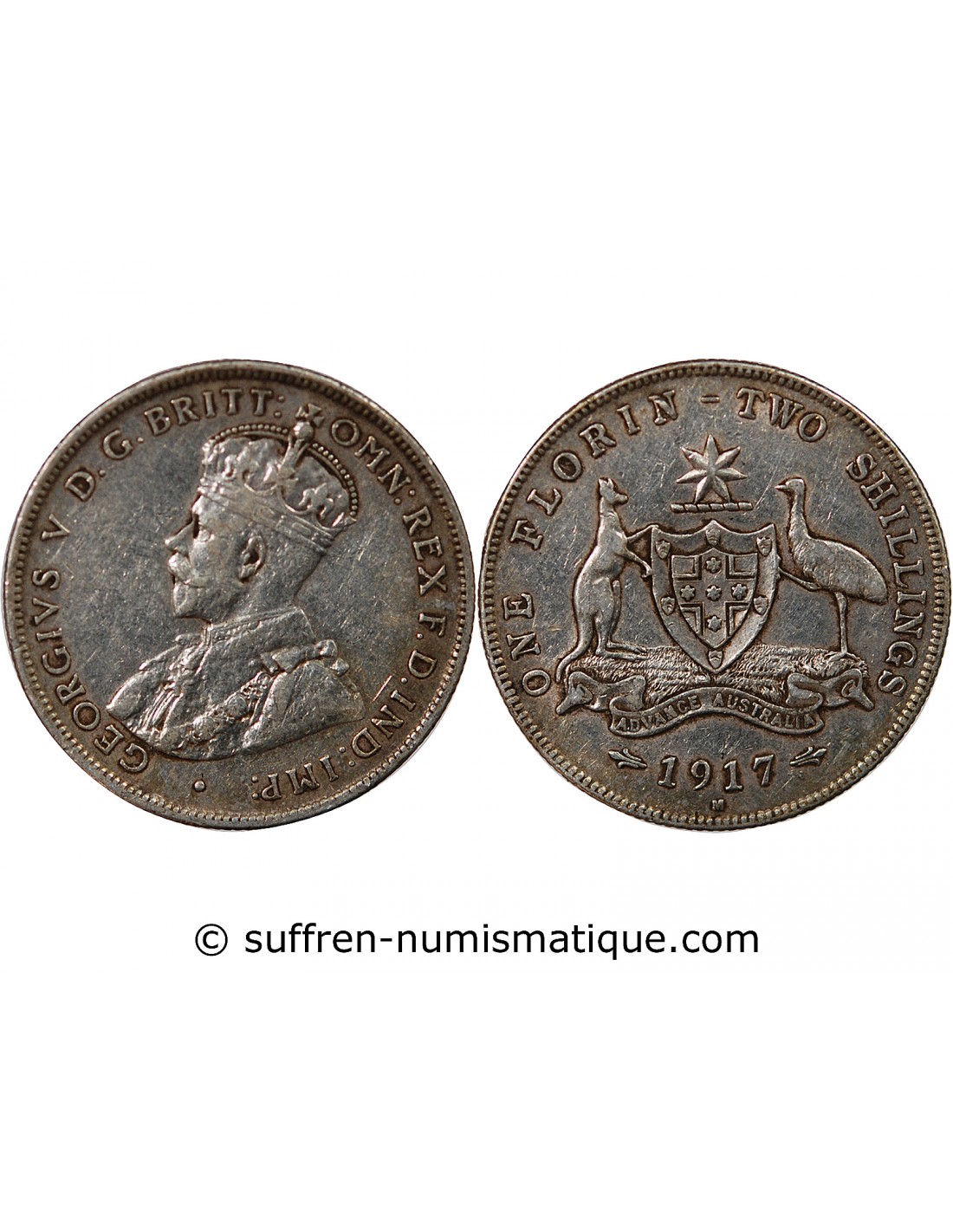 AUSTRALIE, GEORGE V - FLORIN ARGENT 1917 M MELBOURNE