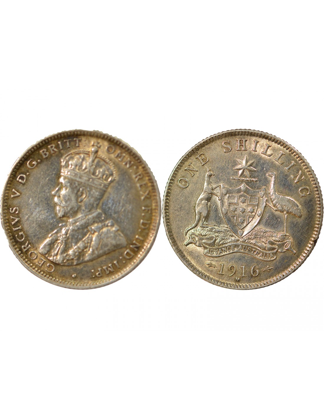AUSTRALIE, GEORGE V - SHILLING ARGENT 1916 M MELBOURNE