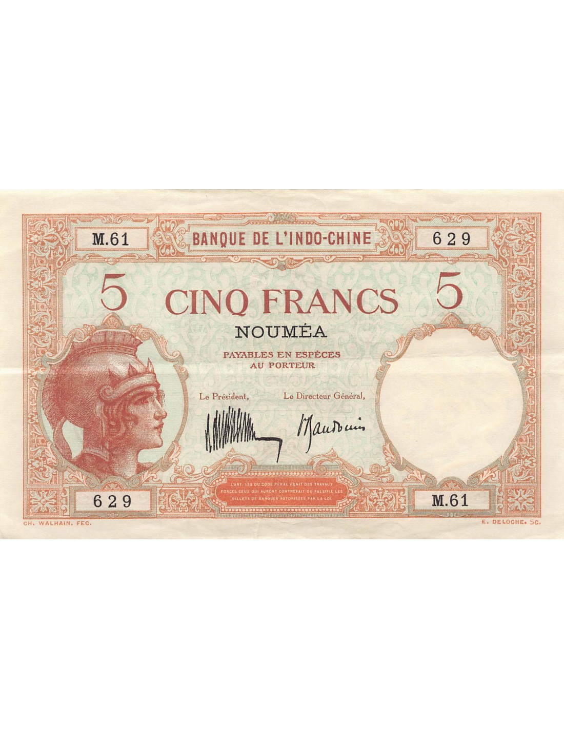 Nle Calédonie 5 Francs - ND (1926) - Série M.61 - P.36b1
