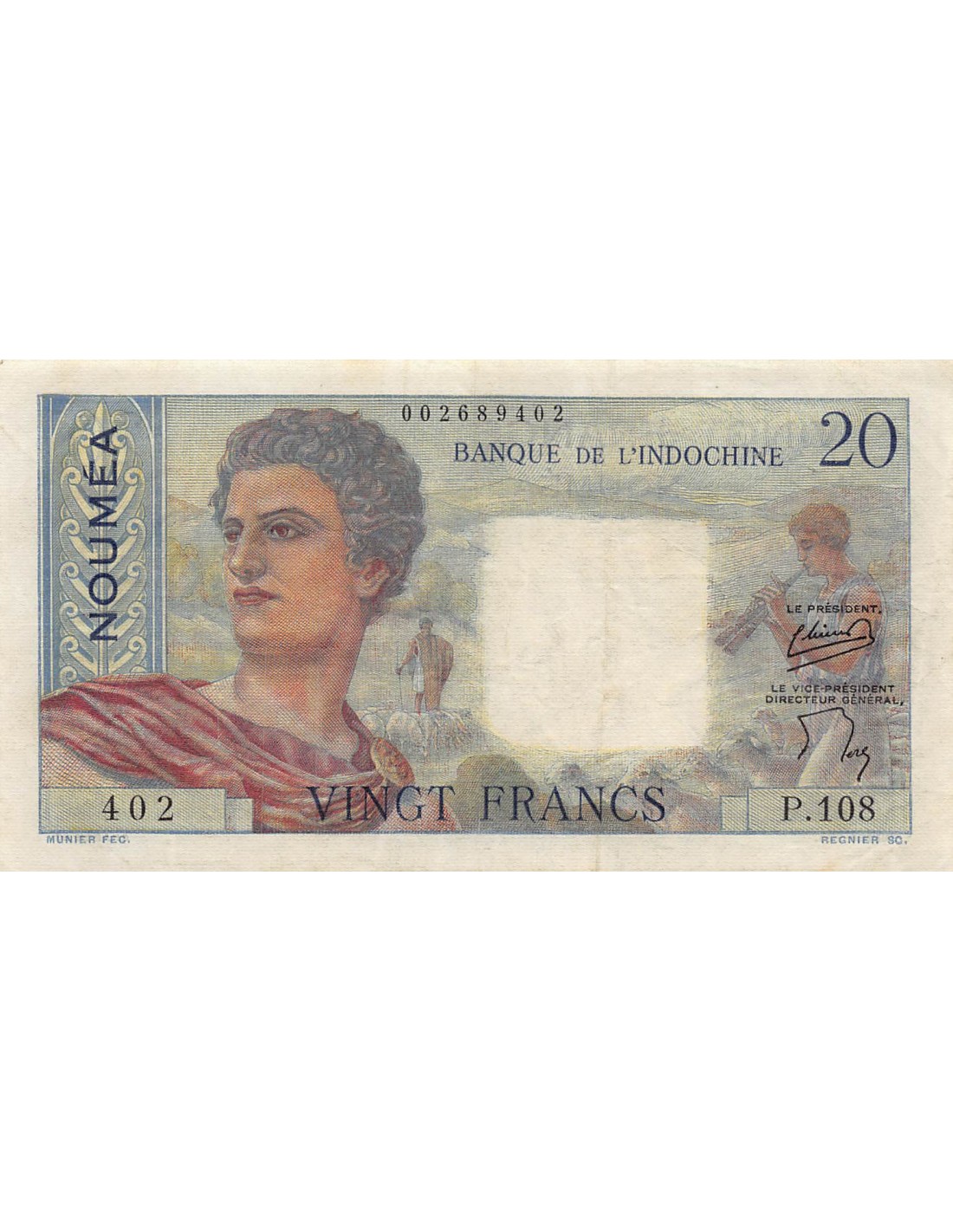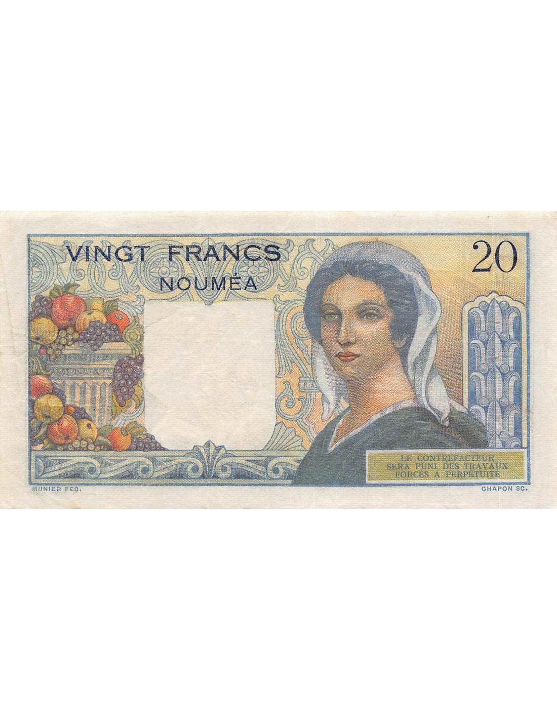 Nle Calédonie 20 francs 1954