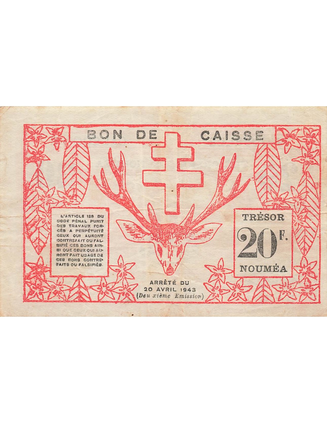 Nle Calédonie 20 francs 1943