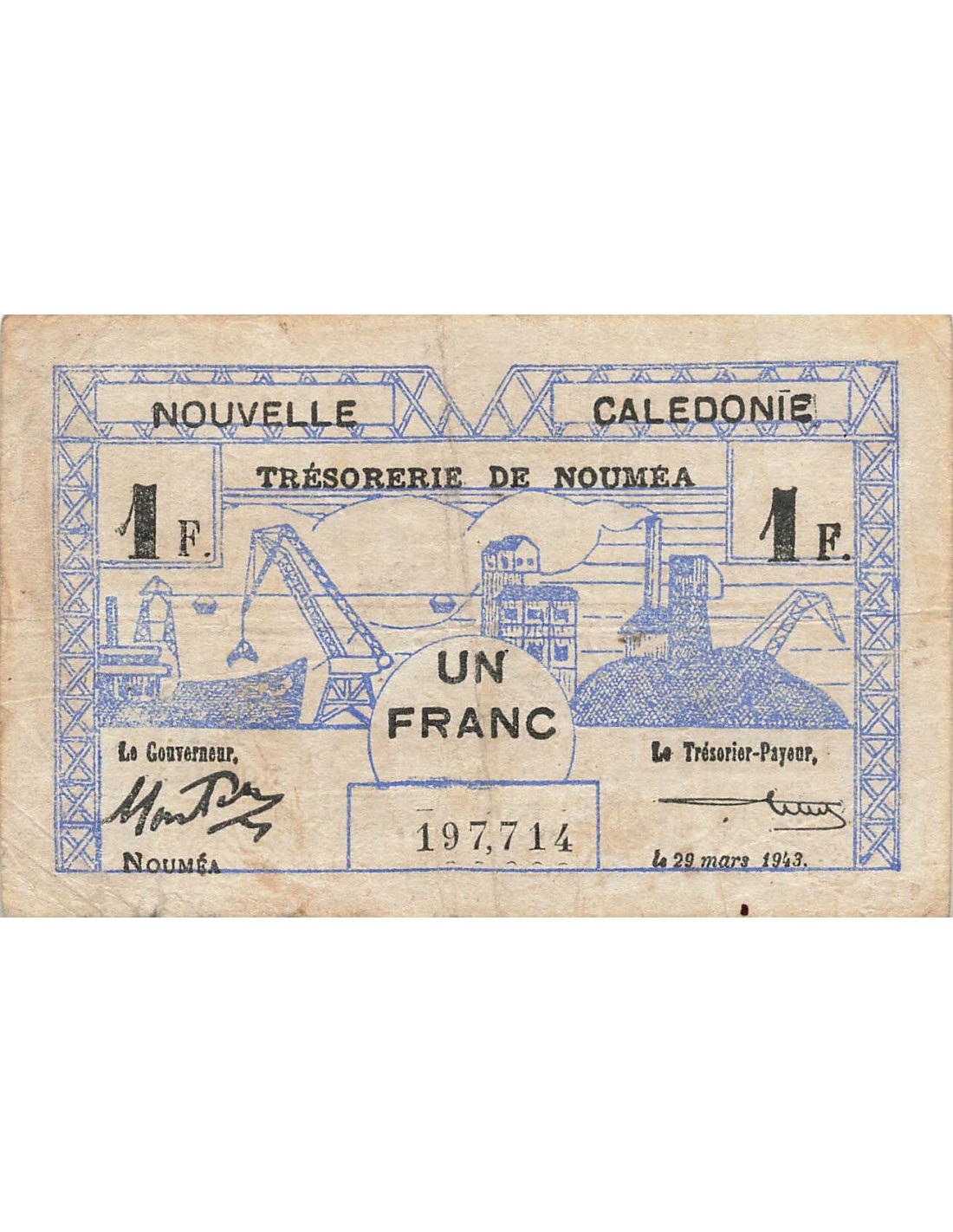 Nle Calédonie 1 Franc - 29-03-1943 - Nouméa - P.55b