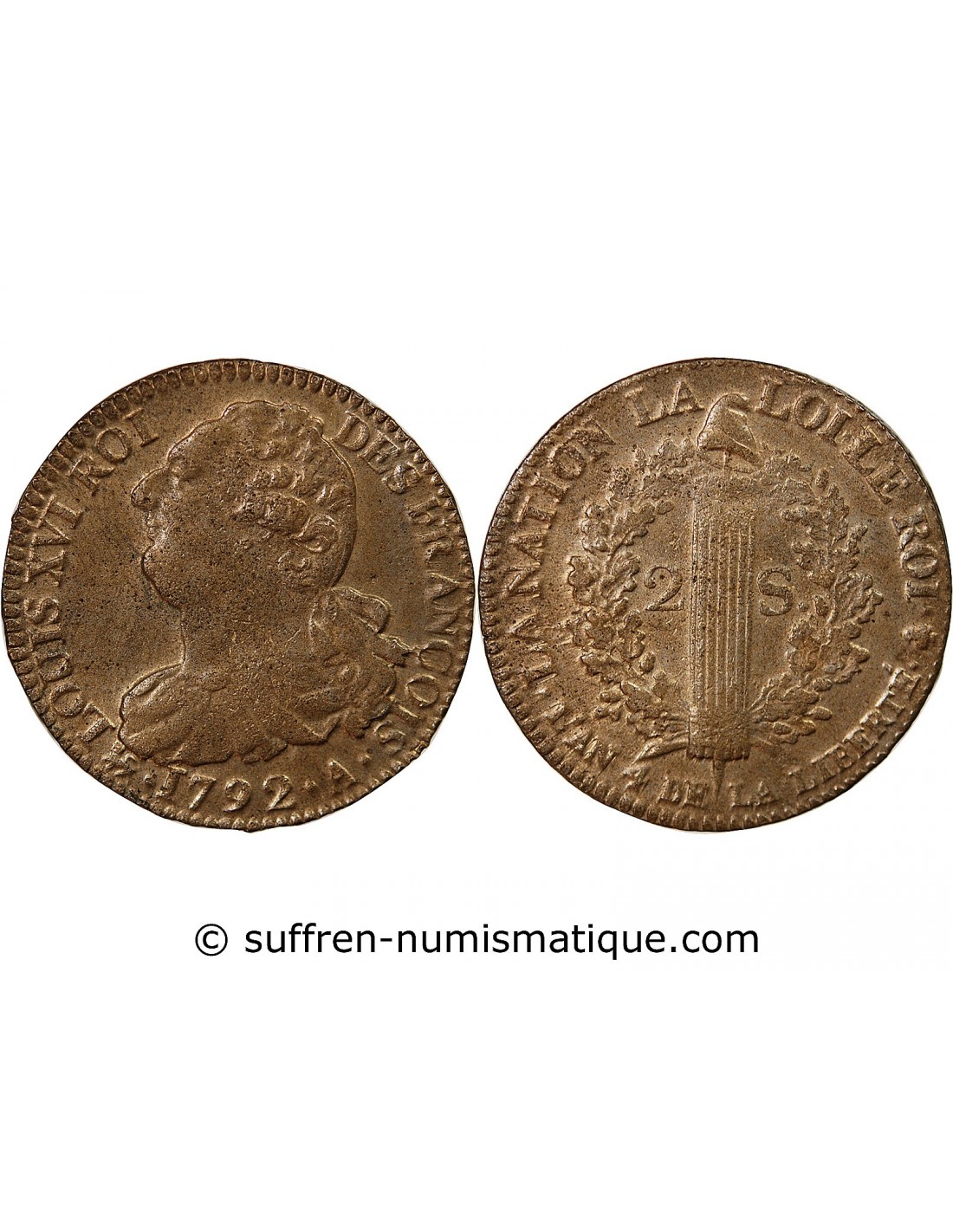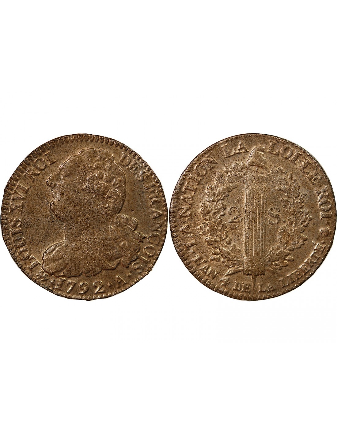 LOUIS XVI CONSTITUTION - 2 SOLS AU FAISCEAU 1792 A PARIS