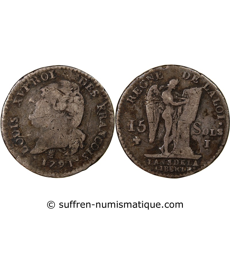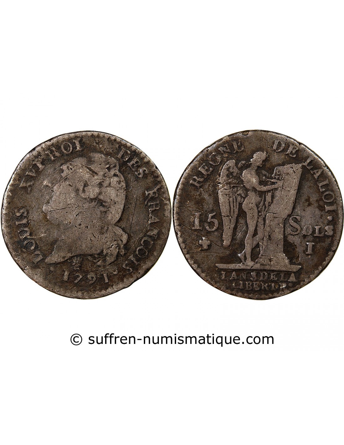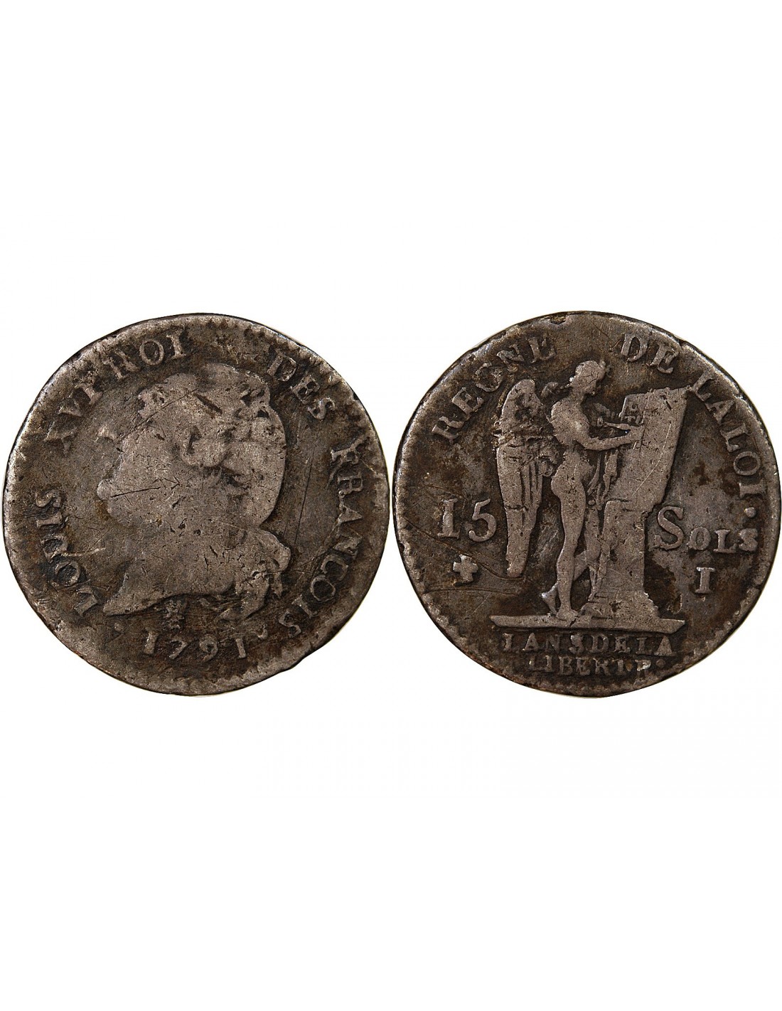 REVOLUTION FRANCAISE, CONSTITUTION - 15 SOLS ARGENT 1791 I LIMOGES