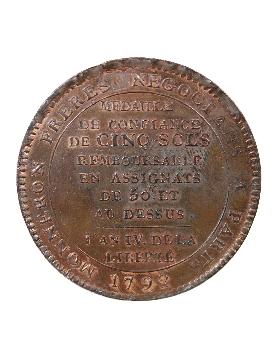 France MONNAIE DE CONFIANCE - MONNERON 5 SOLS AU SERMENT, 2e TYPE 1792 AN IV