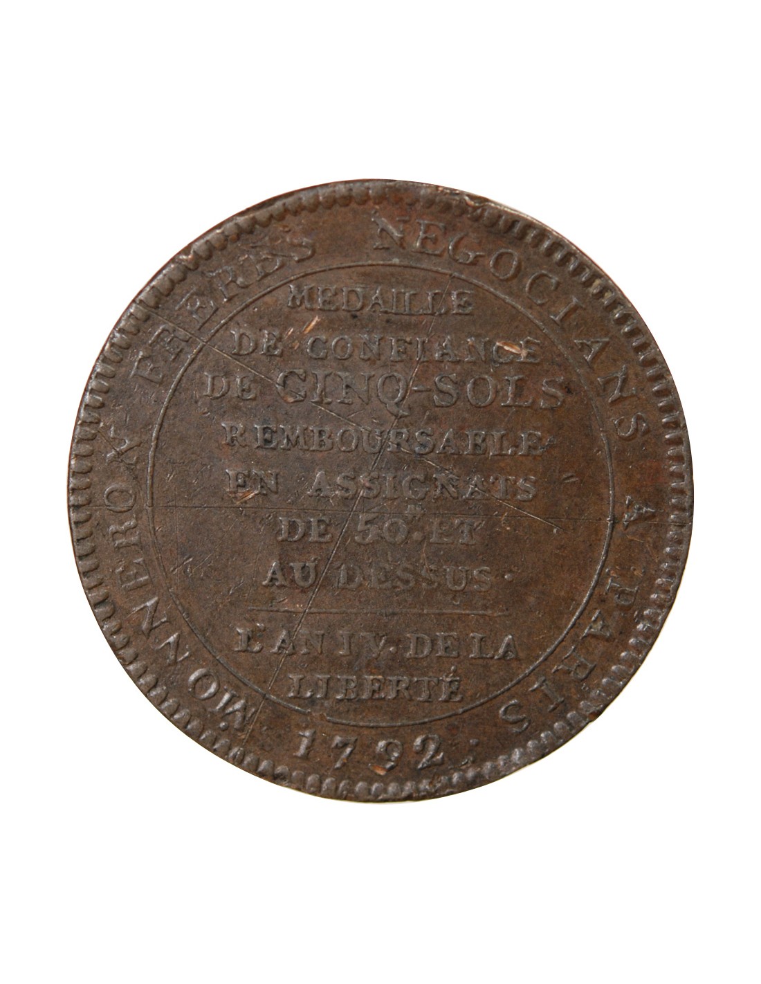 MONNAIE DE CONFIANCE - MONNERON 5 SOLS AU SERMENT 1792 L'AN IV "DEPARTEMENS"