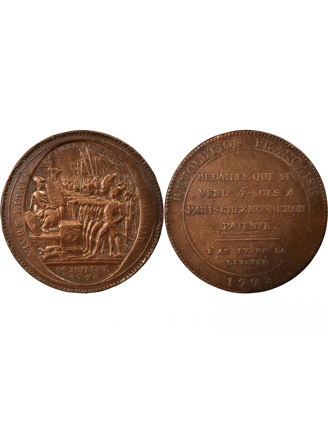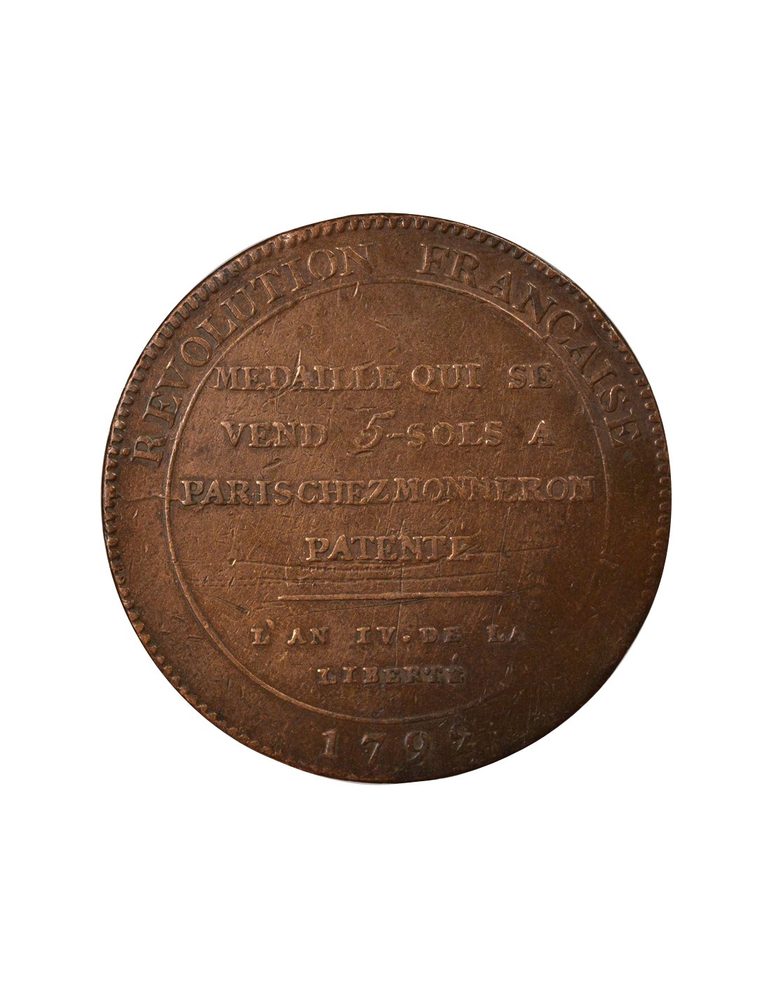 France Monneron - 5 Sols au Serment, "Departemens" - 1792, An IV Birmingham