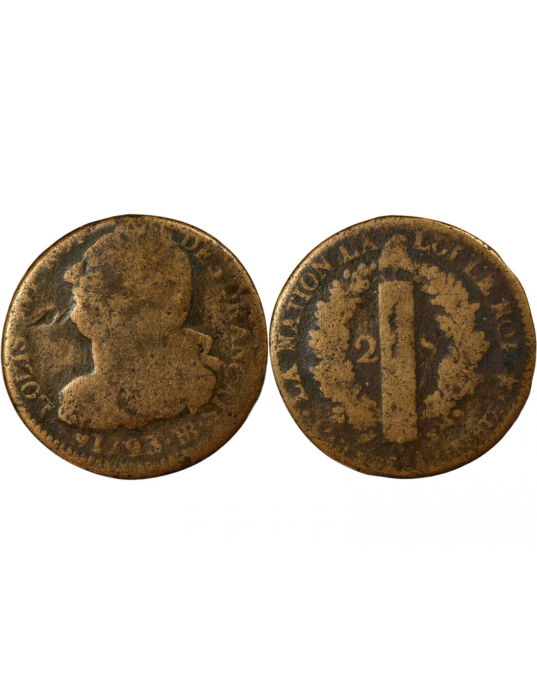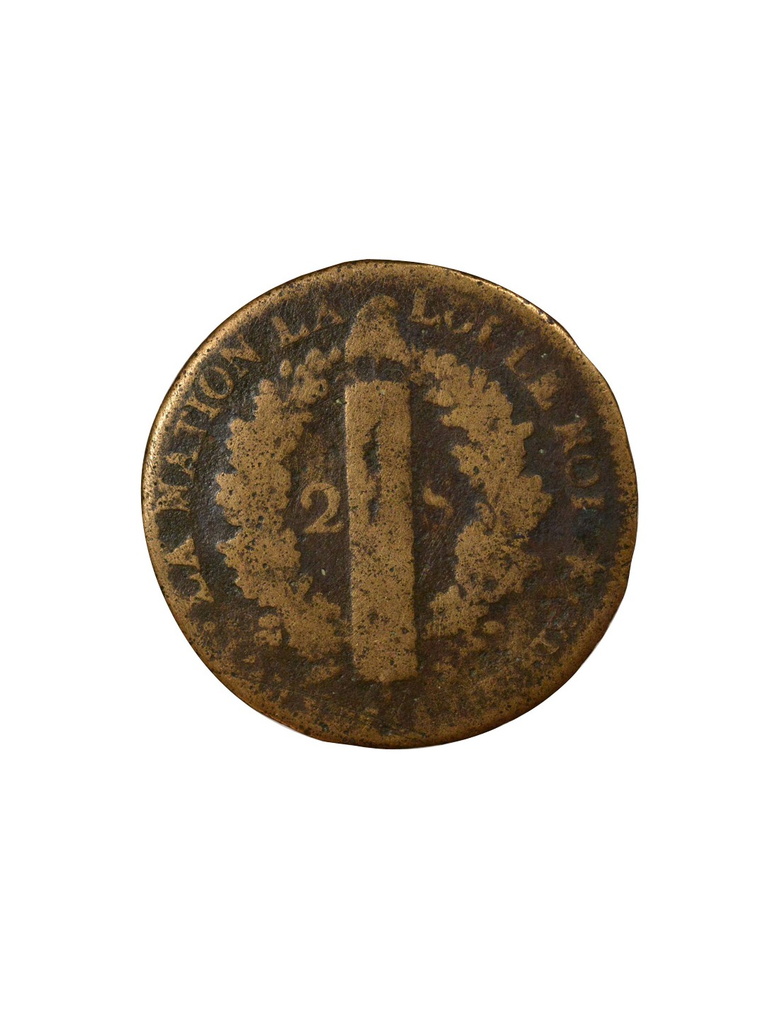 France Louis XVI, Constitution - 2 Sols au Faisceau, type "Français" - 1793 BB Strasbourg