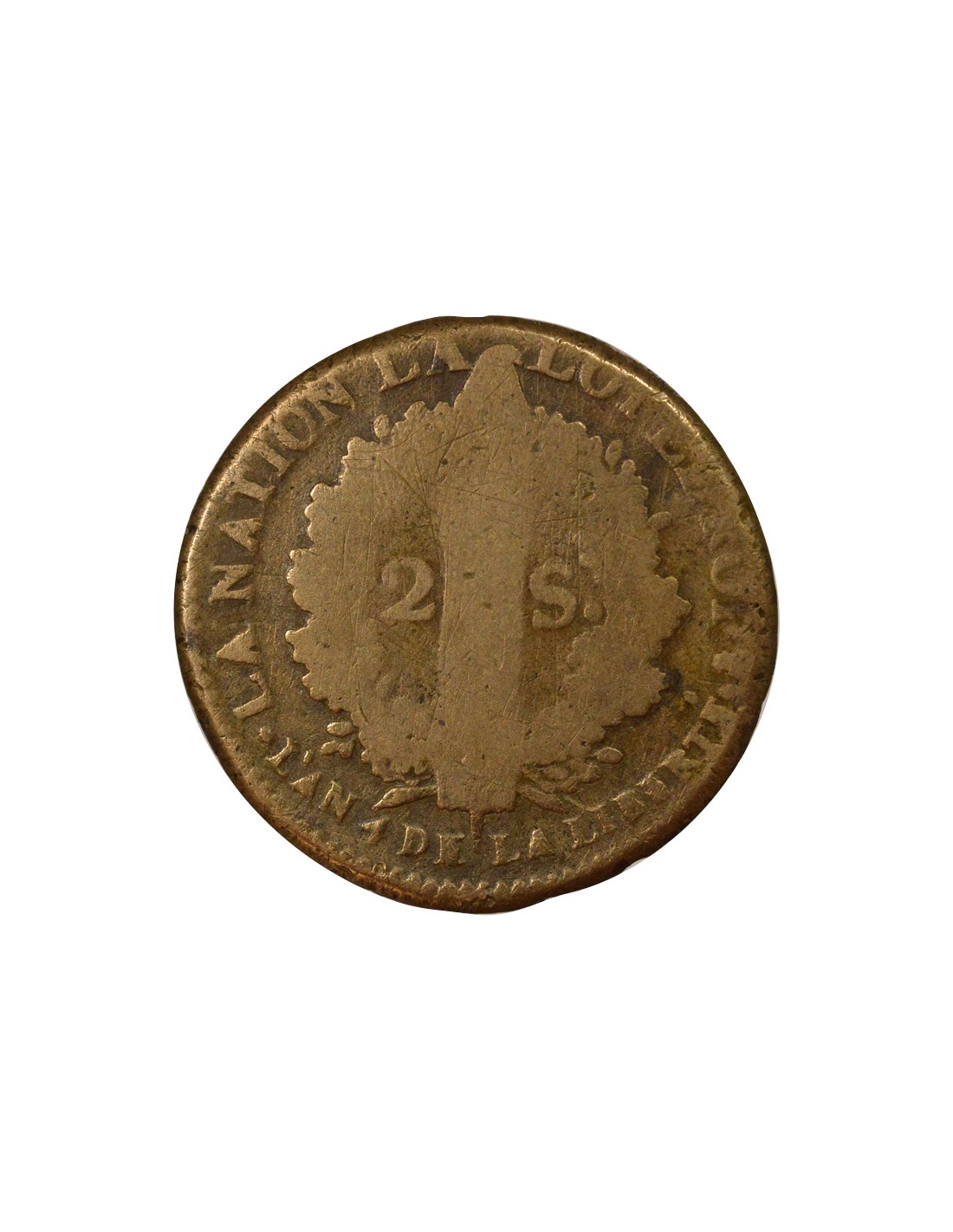 France Louis XVI, Constitution - 2 Sols au Faisceau - 1792 A Paris