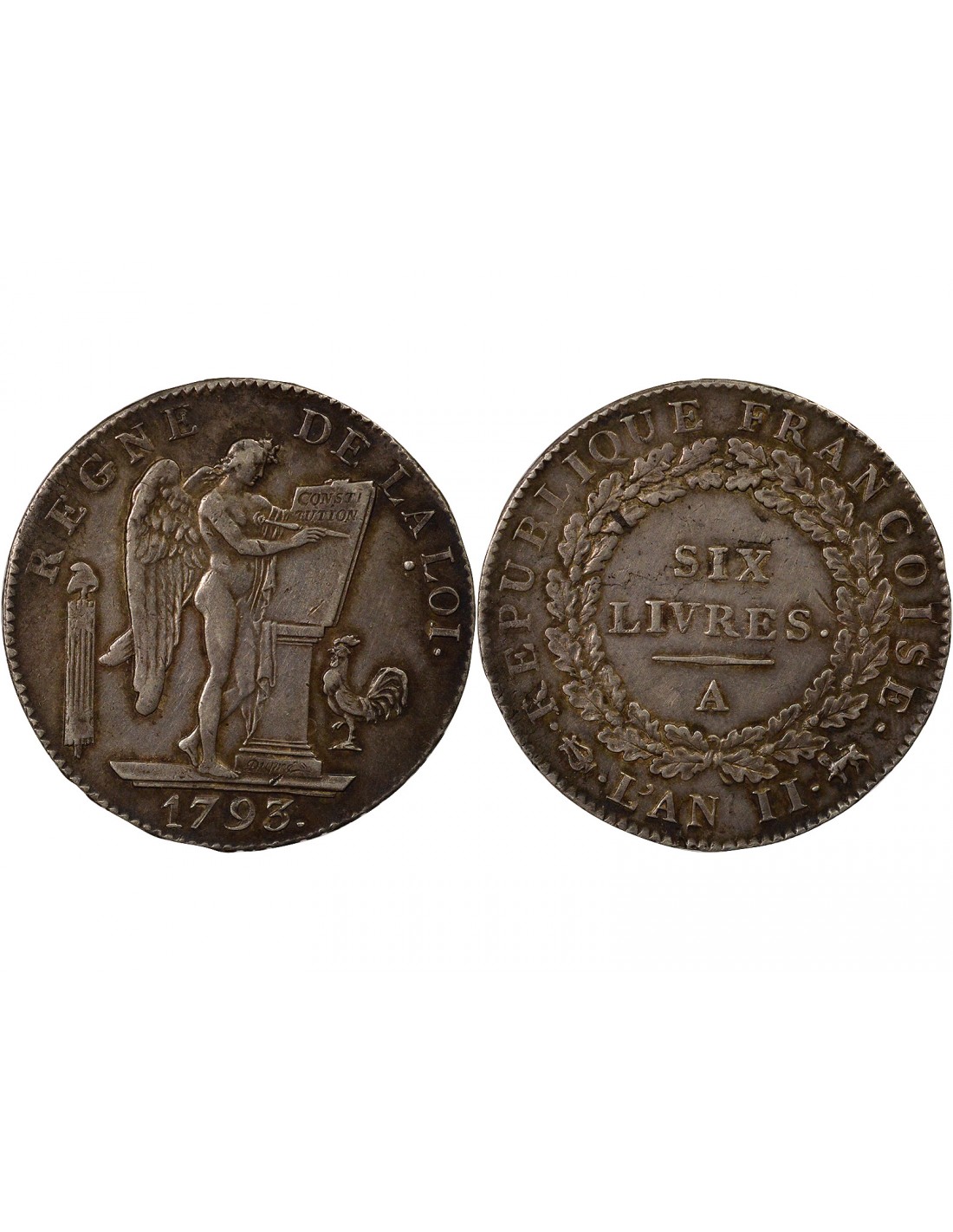 France Six Livres Argent, au Génie - 1793 A Paris, avec point