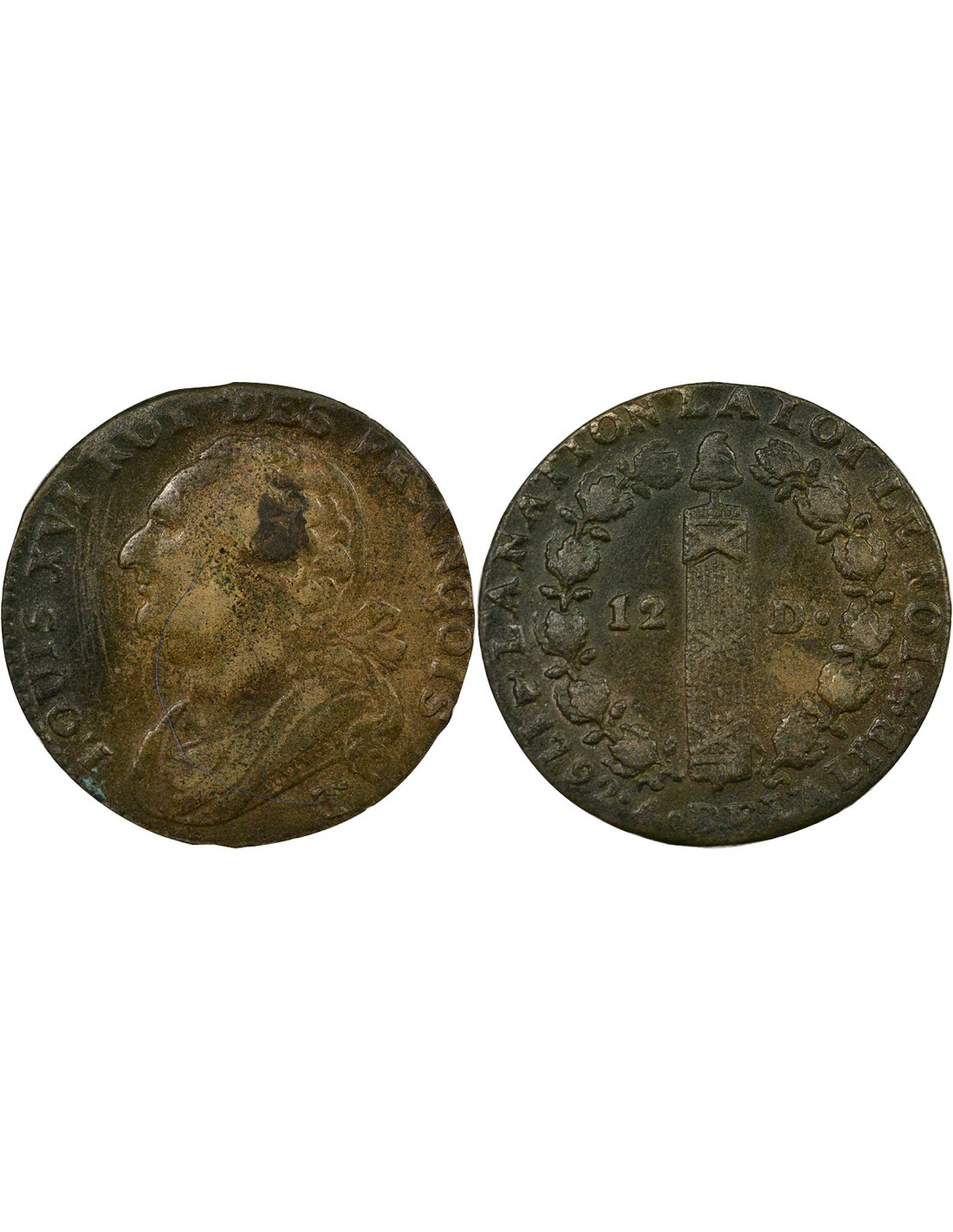 Louis XVI au Faisceau 12 deniers Cuivre 1792 T Nantes