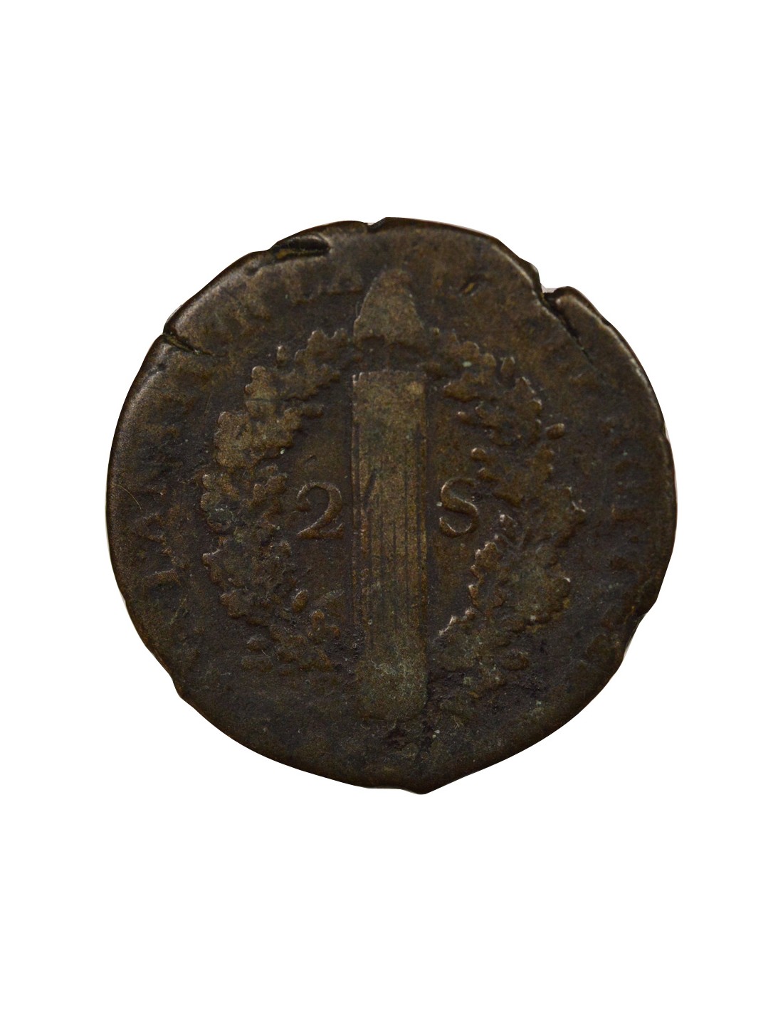 Louis XVI au Faisceau 2 sols Métal de Cloche 1792 Arras