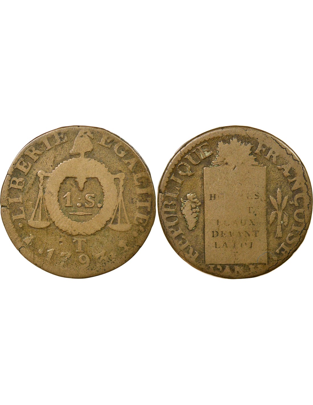 Aux Balances 1 sol Métal de Cloche 1793 T Nantes