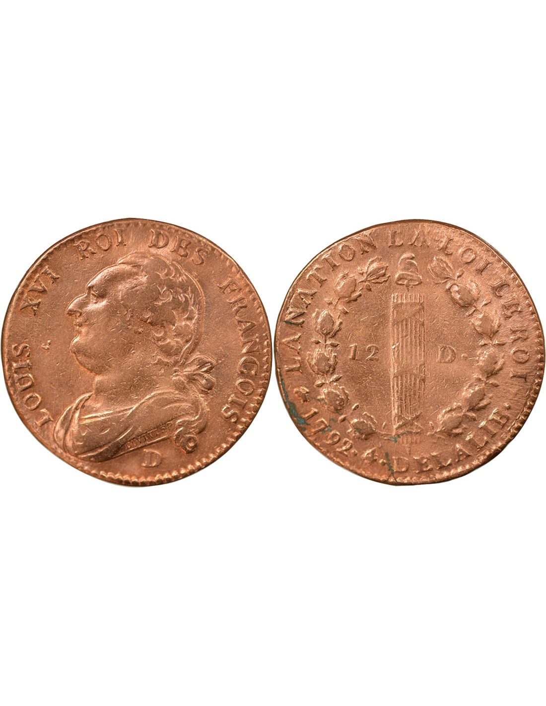 France Louis XVI, Constitution - 12 Deniers au Faisceau - 1792 D Lyon