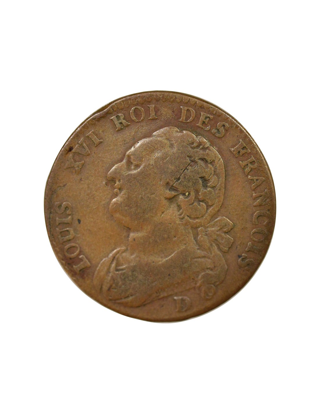 France Louis XVI, Constitution - 12 Deniers au Faisceau - 1792 D Lyon