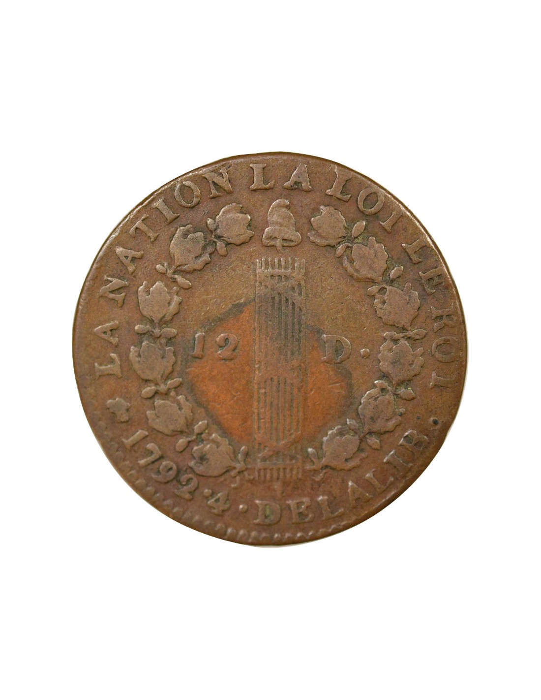 Louis XVI Au Faisceau 12 deniers Cuivre 1792 D Lyon