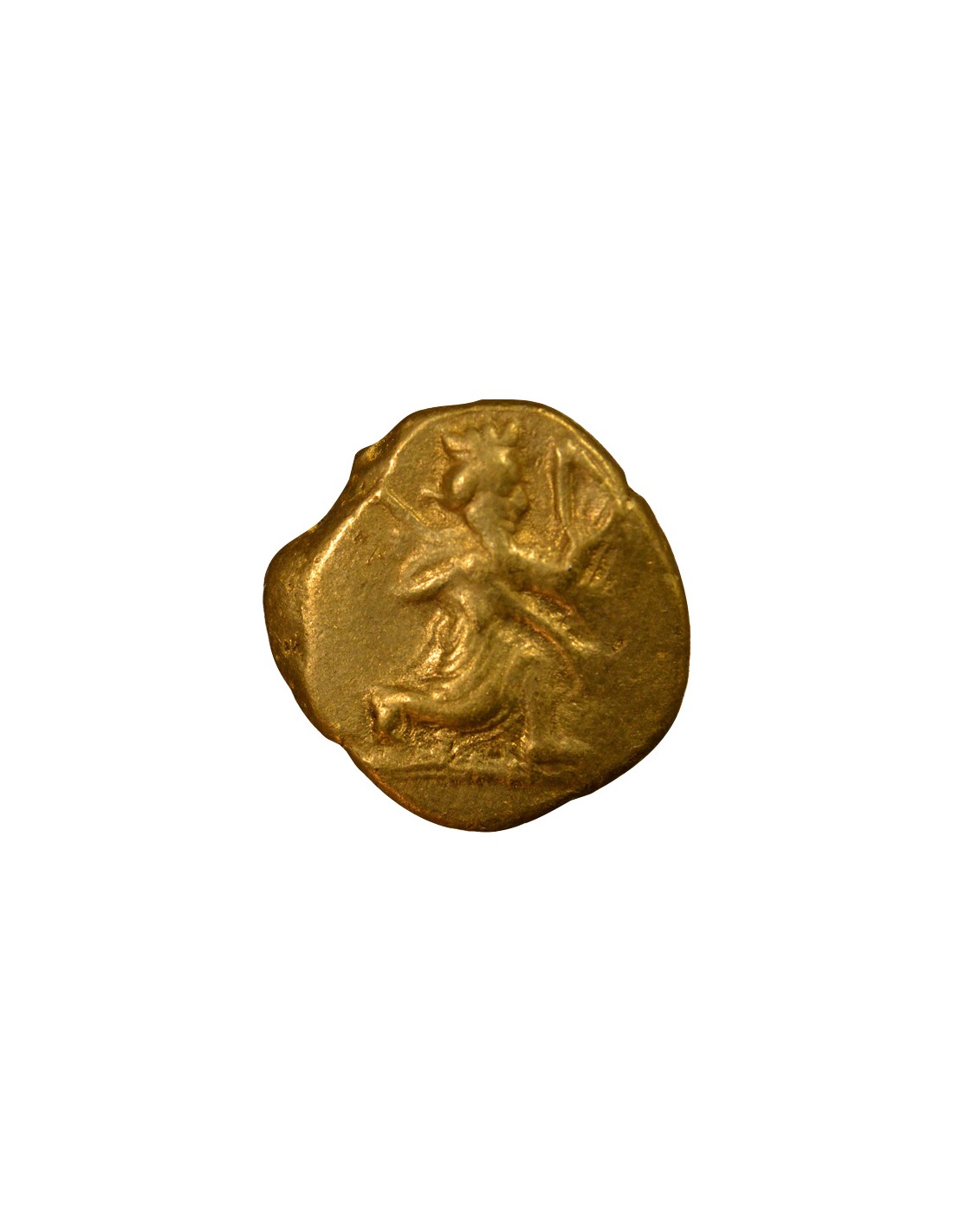 Avers représentant le Roi Darius agenouillé, brandissant un arc de la main gauche et une javeline de l'autre. / Militairement, le règne de Darius et de ses successeurs sera principalement marqué par les guerres médiques qui opposa l'Empire Perse aux Grecs menés par Athènes et Sparte ; c'est sous règne que l'Empire atteindre son extension maximale. D'un point de vue monétaire, on lui doit uniformisation du monnayage perse et notamment la création du darique, plus grosse monnaie en or de l'époque. /