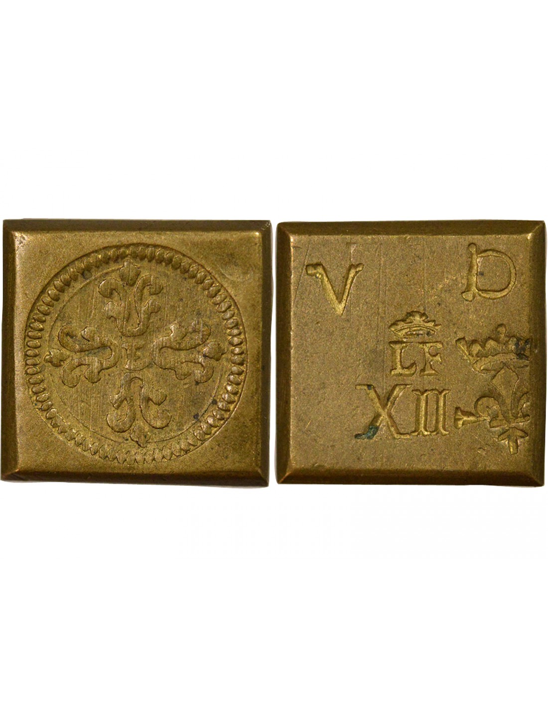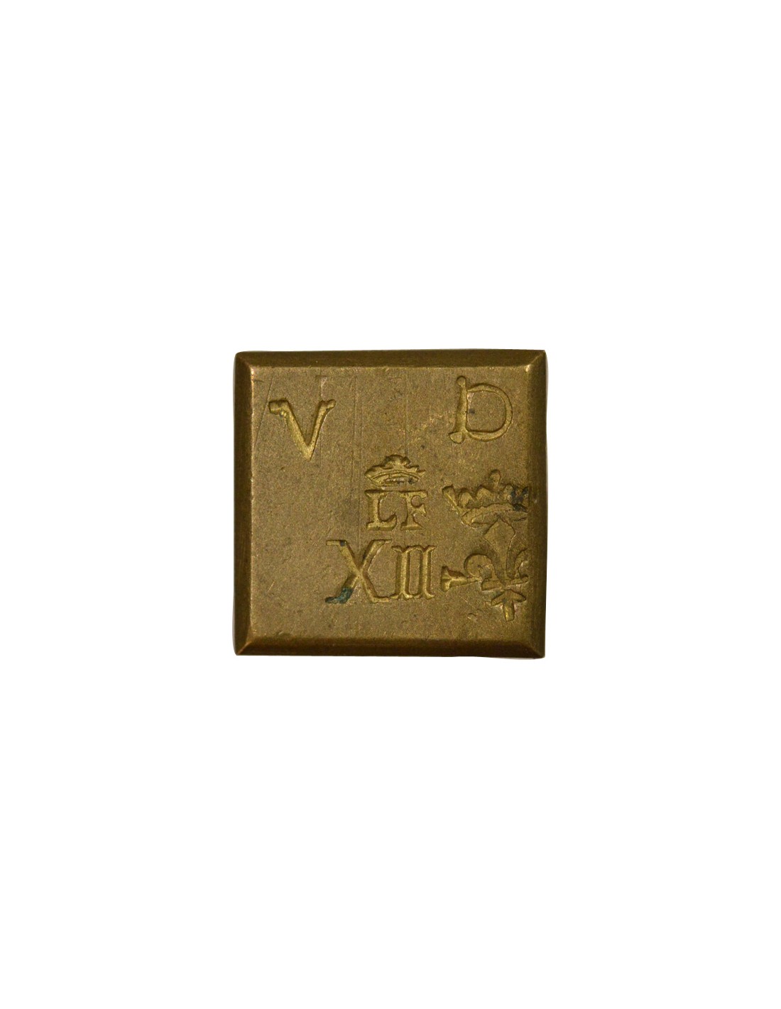 Contremarqué (fleur-de-lys surmonté d'une couronné) par un représentant de la Cours des Comptes commisionné pour vérifier l'étallonage des poids monétaires.
