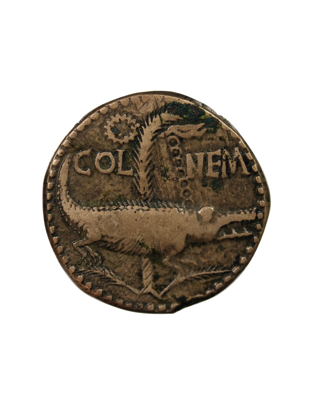 La région de Nîmes fut colonisée par les légions romaines ayant conquis l’Égypte sous le commandement du général Agrippa. Les Dupondius (soit 2 As) de Nîmes furent frappés sous le règne d'Auguste, le crocodile au revers symbolisant l’Égypte captive. Ce type de monnaie, très populaire, circula dans tout l'Empire romain, et fut abondamment copié par les populations gauloises.