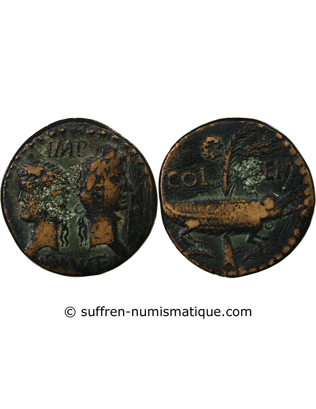 NEMAUSUS, NIMES, AUGUSTE ET AGRIPPA - DUPONDIUS 29 AV JC / 10