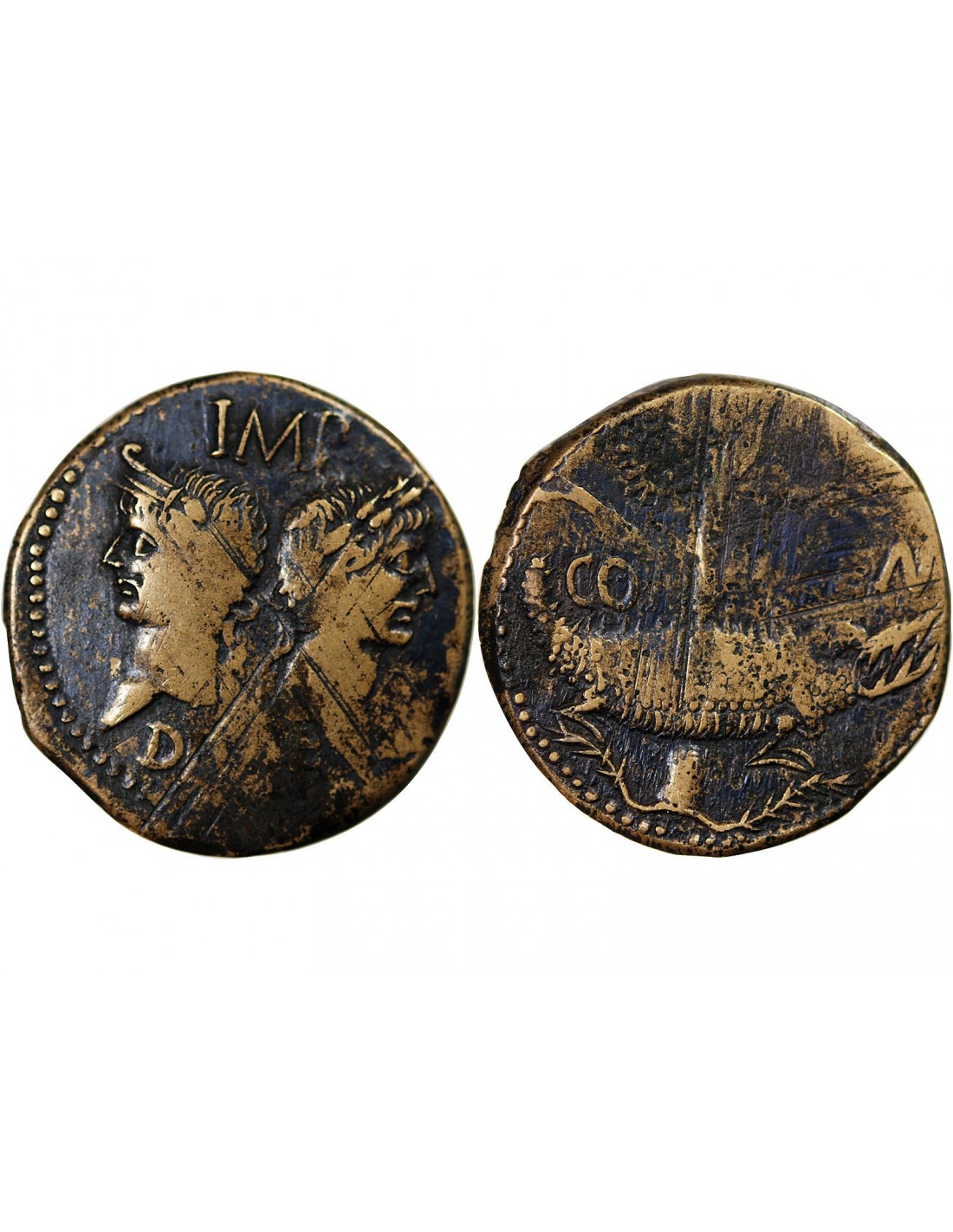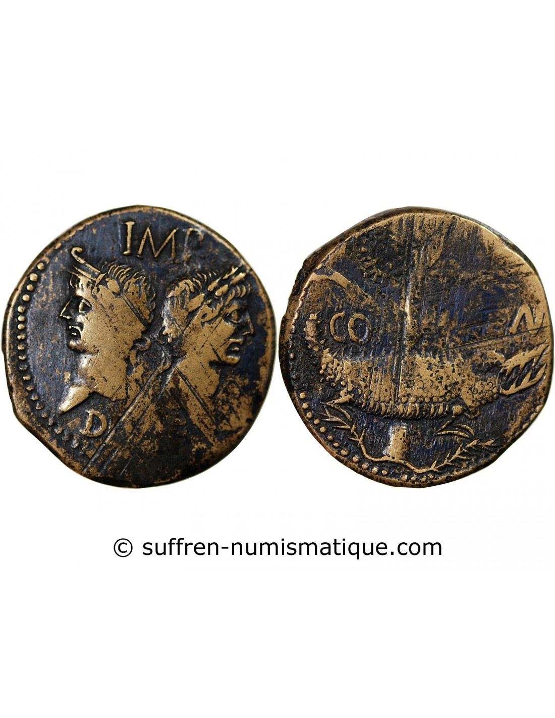 La région de Nîmes fut colonisée par les légions romaines ayant conquis l’Égypte sous le commandement du général Agrippa. Les Dupondius (soit 2 As) de Nîmes furent frappés sous le règne d'Auguste, le crocodile au revers symbolisant l’Égypte captive. Ce type de monnaie, très populaire, circula dans tout l'Empire romain, et fut abondamment copié par les populations gauloises.